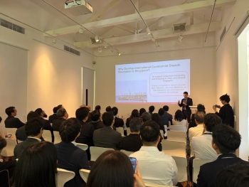 その後、法務省大臣官房国際課及びシンガポール法務省から、それぞれ日本及びシンガポールにおける国際仲裁及び国際調停の活性化に向けた取組について説明を行いました。